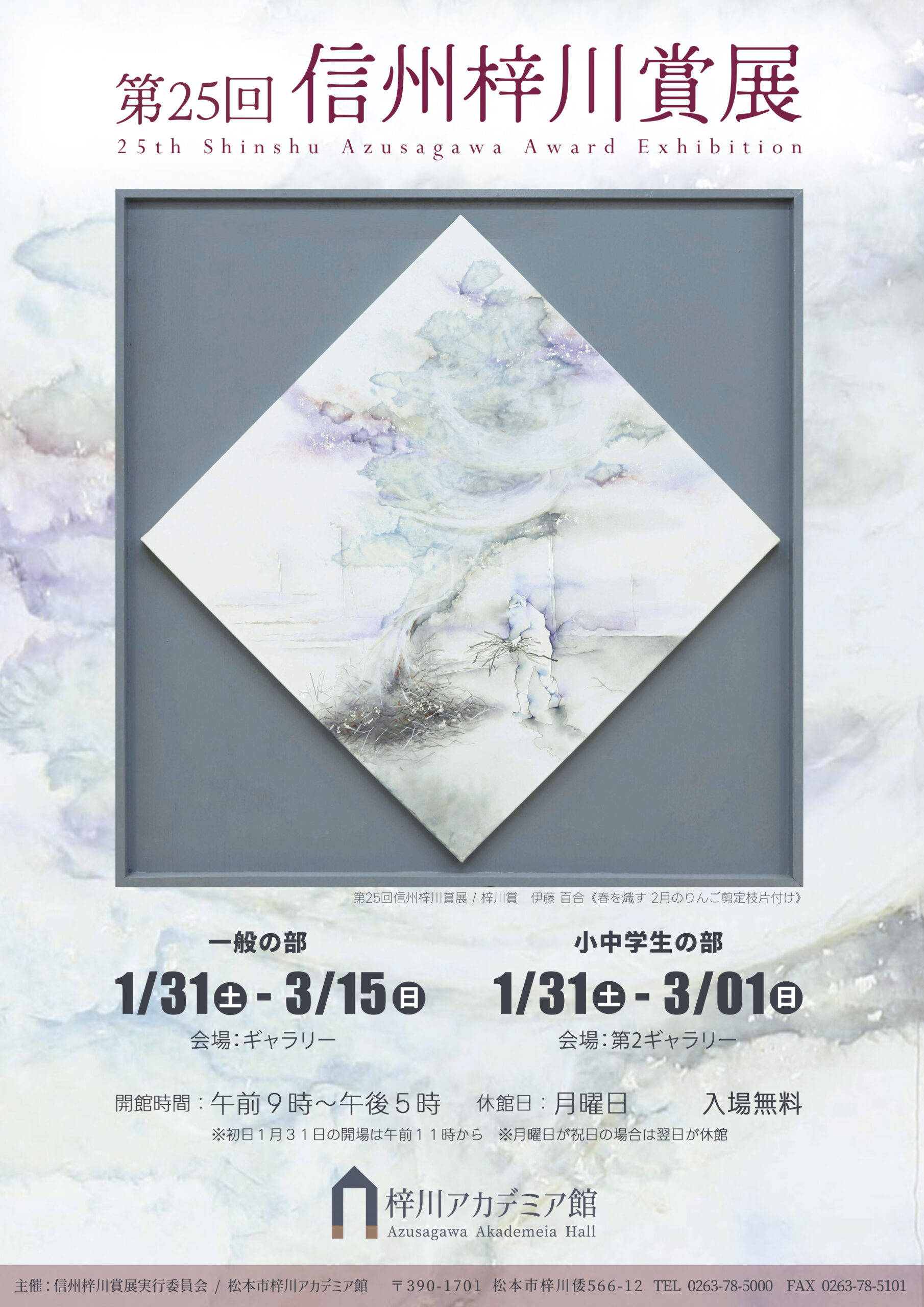 | お問い合わせ | 梓川アカデミア館 TEL 0263‐78‐5000 FAX 0263-78-5101 主催:信州梓川賞展実行委員会/梓川アカデミア館 |