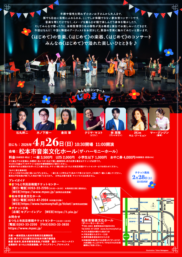 | お問い合わせ | まつもと市民芸術館チケットセンター(10:00~18:00) 共催:東アジア文化都市2026松本市実行委員会 後援:松本市、松本市教育委員会 協力:ハーモニーメイト 企画制作:まつもと市民芸術館、ザ・ライブラリー、プロマックス |